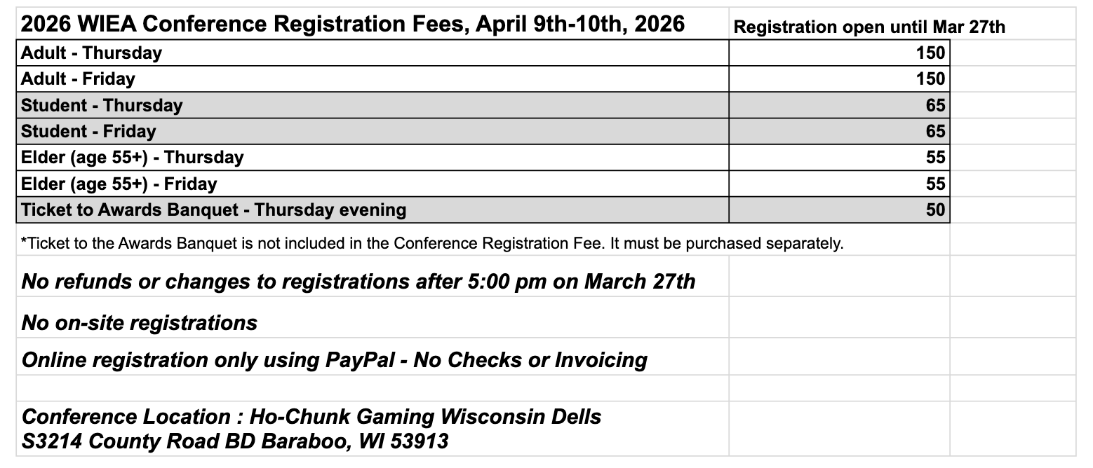 Click below to view the registration prices for the 2026 WIEA Annual Conference.