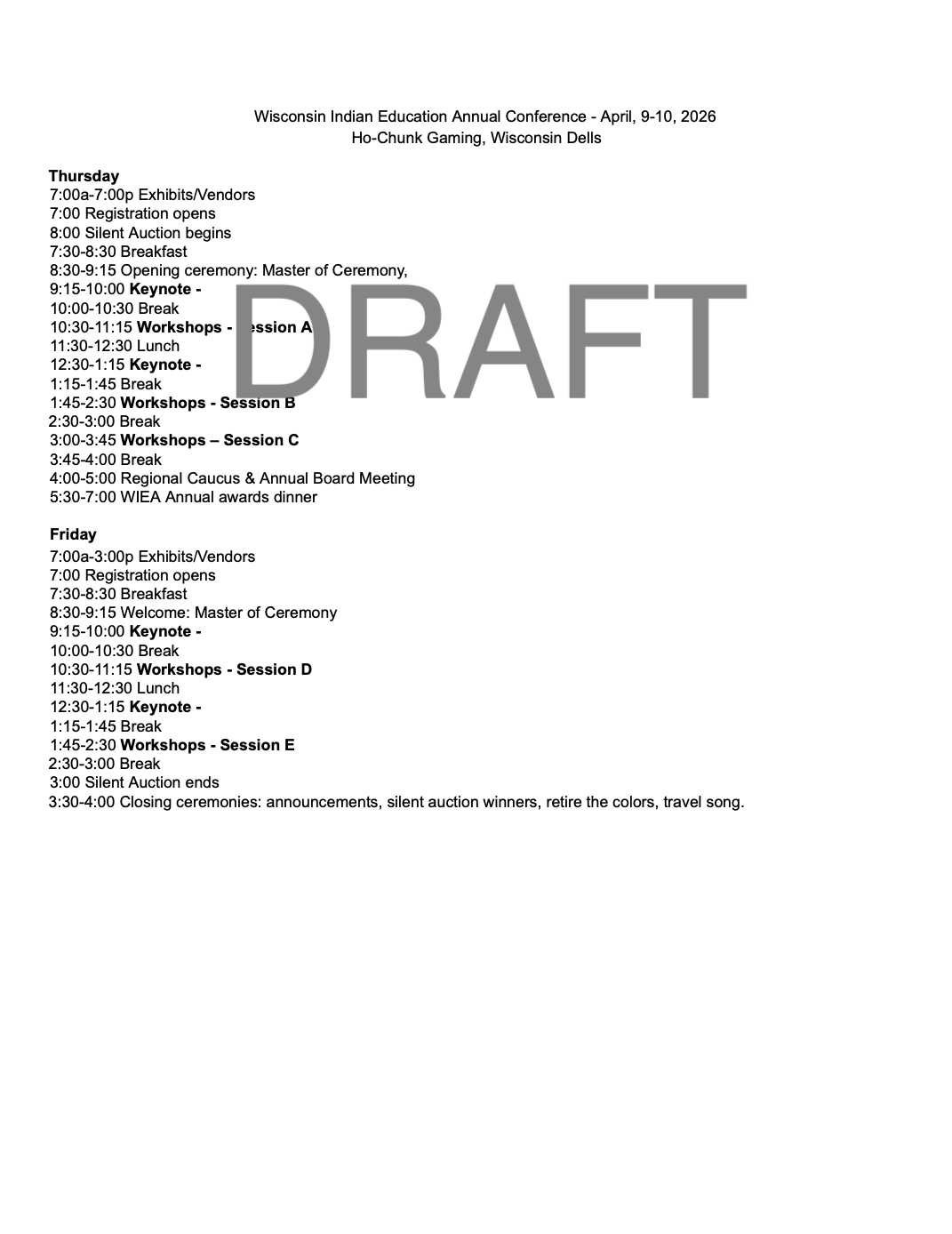 Draft Conference Agenda